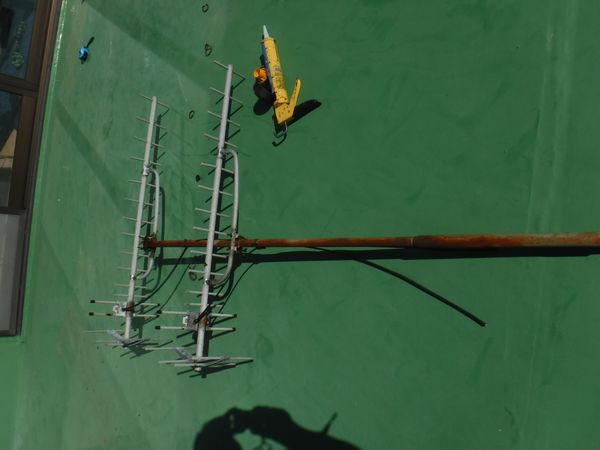 お話ですと、ベランダにお父様が建てた5~6mほどあるポールにアンテナが付いているようですが、錆が浮いており、万が一倒壊でもしたら危険なので、そちらのアンテナを撤去して、別の場所に短めにアンテナを建て替えてほしいとの事です。